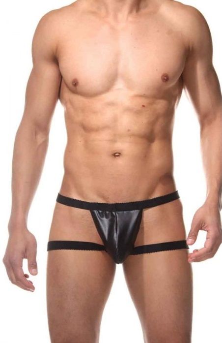 Мужские трусы из гладкого материала, с полностью открытыми ягодицами и резинками на бедрах.