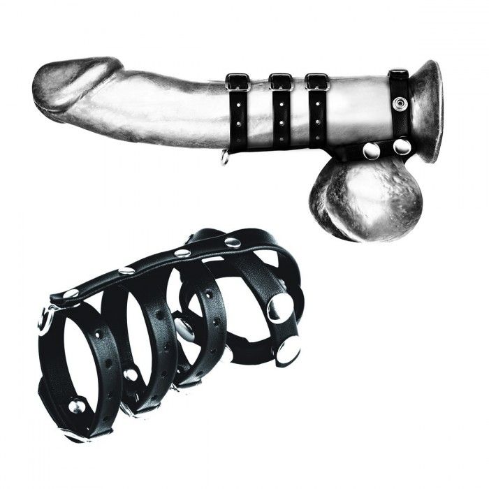 Это комбинированный ремень из 3 колец предназначен для максимального утягивания половых органов у мужчин. Пенис опухнет, яички будут сдавлены. Особенности петли в нижней части в том, что она идеально подходит для подвешивания веса и других предметов или для поводка.