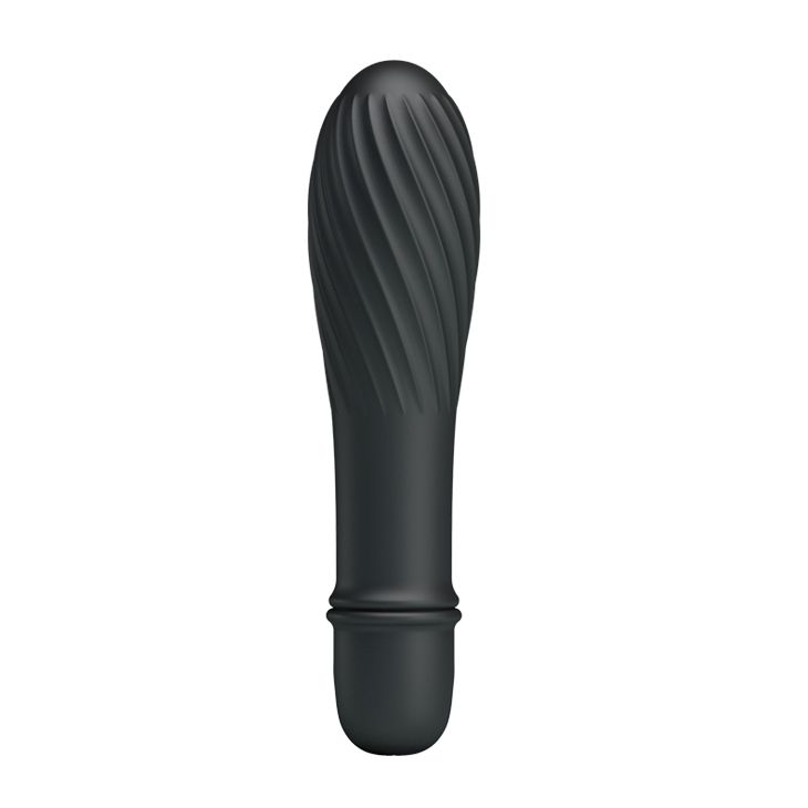 Чёрный вибратор Solomon с бороздками. 10 режимов вибрации.